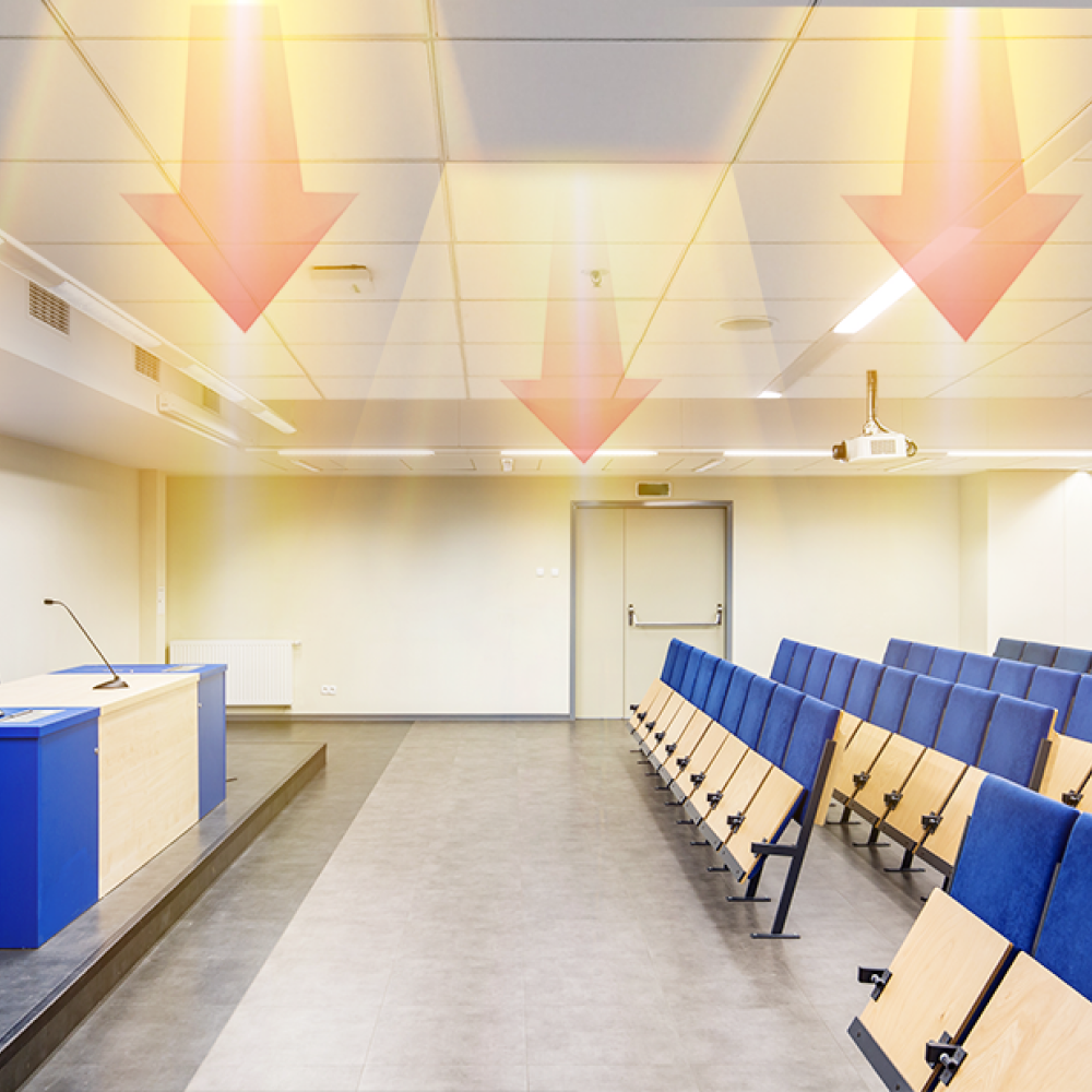 Обогреватели оптимально подходят для обогрева офисных, торговых, общественных помещений, а также кафе, баров, ресторанов – любых помещений, где используются системы подвесных потолков типа «Армстронг».