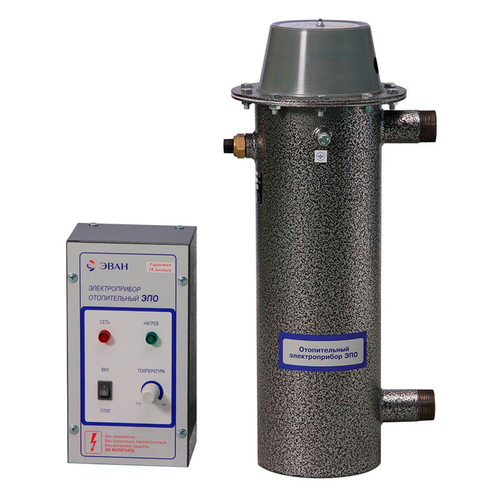 Котел Эван ЭПО-7,5 относится к классу «Стандарт-Эконом». Он используется для отопления жилых, производственных и других помещений небольшой площади. Котел может быть как основным, так и резервным источником отопления. Его рекомендуется эксплуатировать в помещениях с естественной вентиляцией воздуха. Котел Эван ЭПО-7,5 относится к приборам с первым классом защиты от электрического тока и подключается к однофазной трехпроводной электрической сети. Котел состоит из корпуса с входными и выходными патрубками, крышки с ТЭНом из нержавеющей стали и регулятором температуры. Прибор устанавливается на стену в вертикальном положении. В качестве теплоносителя разрешается использовать воду или низкотемпературную жидкость без механических примесей. Основными отличительными особенностями электроотопителя Эван ЭПО-7,5 является наличие аварийного термовыключателя, три пульта управления (аналоговый, электронный, модернизированный), а также экологичность, полная автоматизация управления и низкая стоимость. Для продолжительной безопасной работы необходимо проводить регулярное техническое обслуживание прибора, кроме того, каждые 5 лет специалист сервисной службы должен проводить освидетельствование котла Эван ЭПО-7,5.