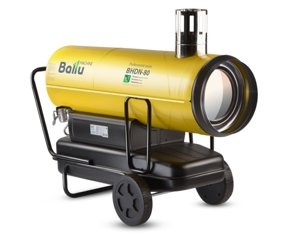 Воздух из помещения при помощи вентилятора, расположенного в основании пушки втягивается внутрь корпуса и, частично попадая в горелку теплообменника, который является камерой сгорания, смешивается с распылённым форсункой дизельным топливом, образуя воздушно-топливную смесь, которая автоматически поджигается посредством 12kV электродов. Нагретый воздух вместе с продуктами сгорания, пройдя через теплообменник- выбрасывается наружу из дымохода, расположенного в верхней части корпуса пушки. Весь остальной объём воздуха, обтекая теплообменник нагревается и выбрасывается в обогреваемое помещение, не смешиваясь с продуктами сгорания.