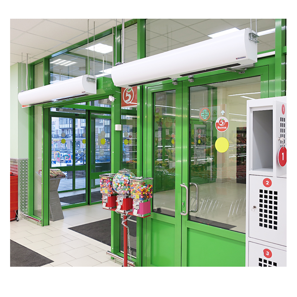 Воздушная завеса Оптима для проемов высотой от 2 до 2,5 м. Верхнее всасывание воздуха, обеспечивает чистоту передней панели.