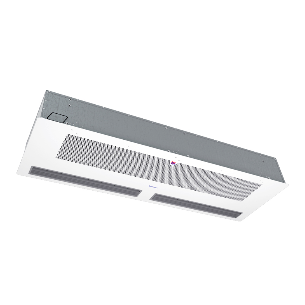 Встраиваемая потолочная воздушно-тепловая завеса для проёмов высотой до 2,5 метров. Тепловая завеса предназначена для скрытой установки за подвесным потолком. Сервис и обслуживание осуществляется через переднюю панель завесы.