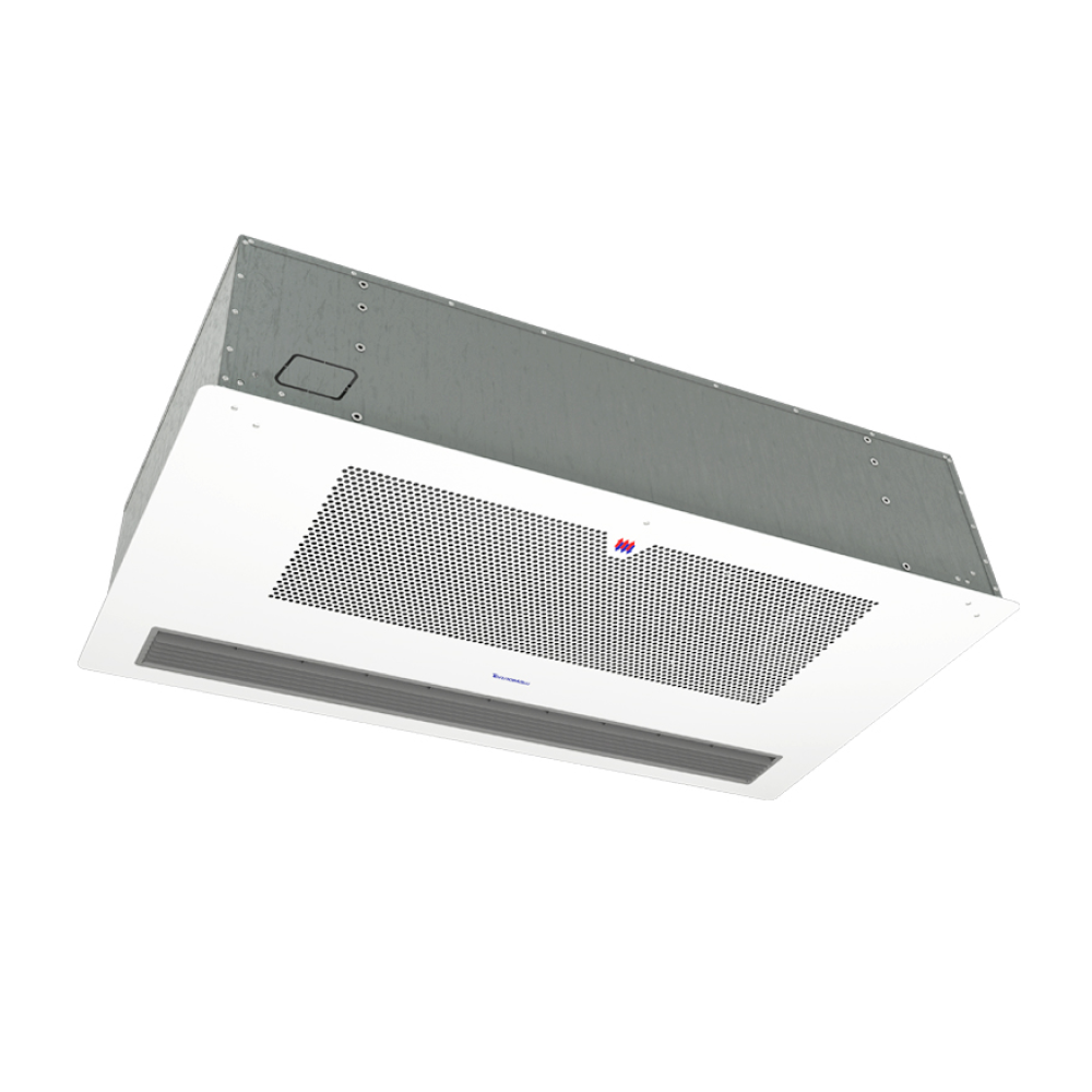 Встраиваемая потолочная воздушно-тепловая завеса для проёмов высотой до 2,5 метров. Тепловая завеса предназначена для скрытой установки за подвесным потолком. Сервис и обслуживание осуществляется через переднюю панель завесы.