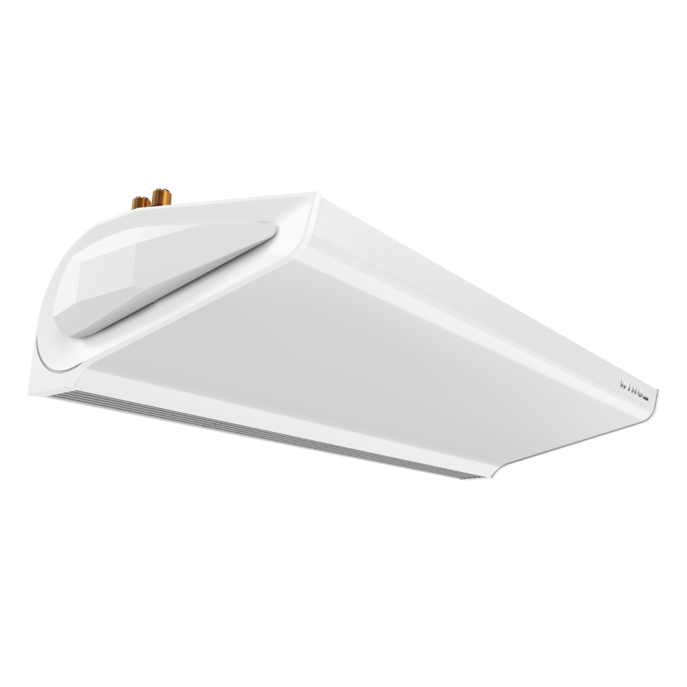 Воздушная завеса c водяным теплообменником WING II W100 ЕC имеет футуристический дизайн и может не только отсекать холодный воздух, предотвращать попадание пыли, грязи и неприятных запахов, но и экономить деньги, используя медный теплообменник в качестве нагревателя. Применяется прежде всего в жилых помещениях, автосалонах, торговых центрах, магазинах, больницах и церквях.