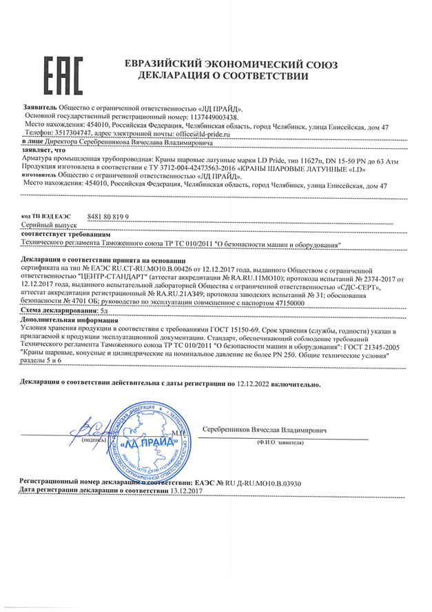 Изделие под маркой LD PRIDE отвечает всем современным требованиям и стандартам трубопроводной арматуры.
